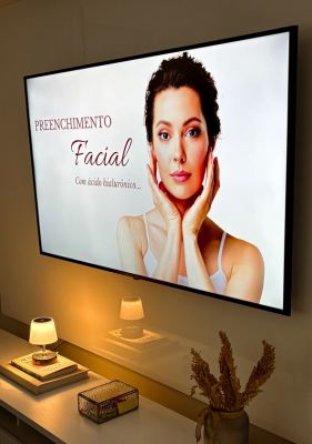 A TV para Harmonização expõe todos os tratamentos que você oferece, seus diferencias, formação e prepara a mente do seu cliente antes dele entrar na sua sala.